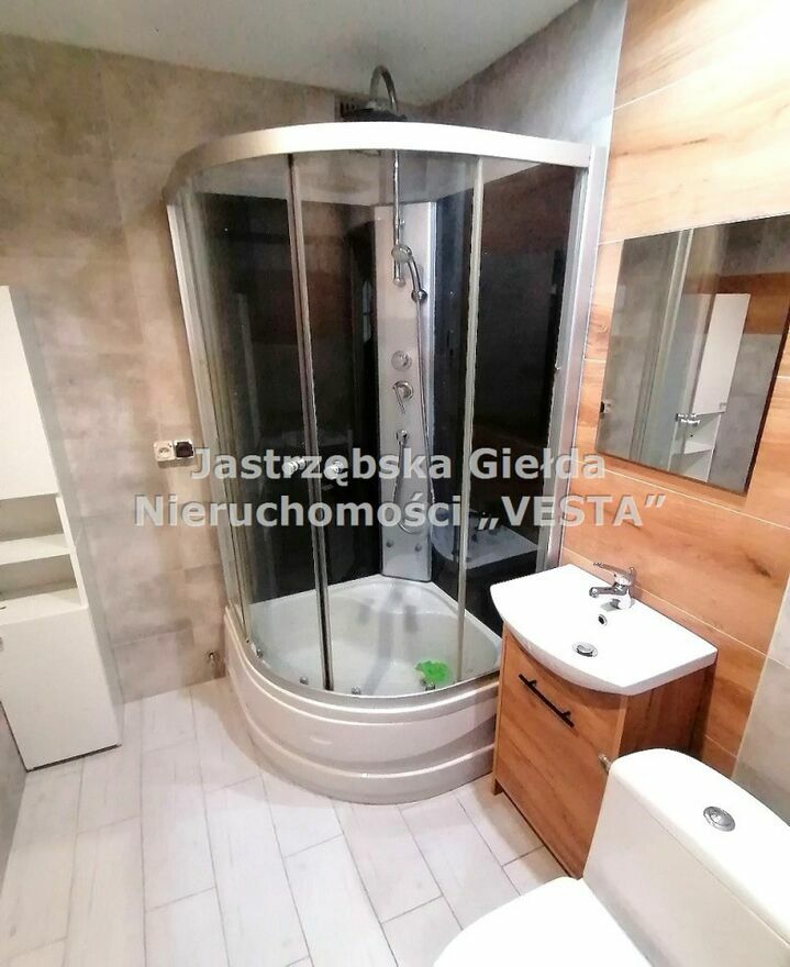 Kuchnia z oknem pozostają meble kuchenne. Łazienka w glazurze na wyposażeniu kabina prysznicowa, umywalka z szafką.