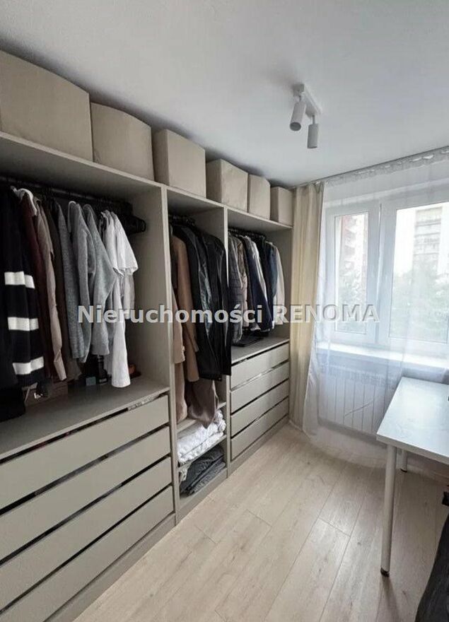 Drugi pokój zaaranżowany jako garderoba/biuro, z ogromną szafą PAX o długości 2,5 m