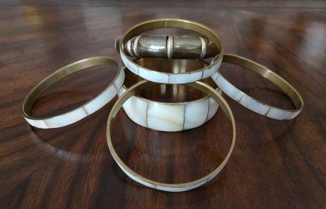 Oferuję 6 starych bransolet wykonanych z mosiądzu i masy perłowej. Pochodzą z lat 80 ubiegłego wieku lub ...