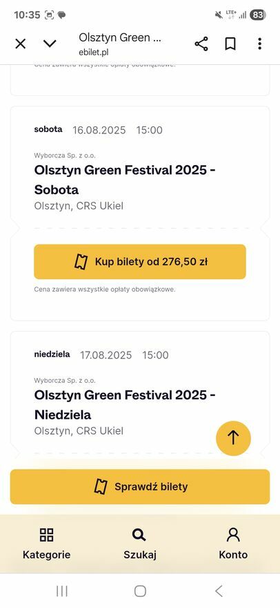 Witam mam na sprzedaż jednodniowy bilet (sobota 16.08.25) na Olsztyn green festiwalSprawdź zainteresowanie tym ogłoszeniem