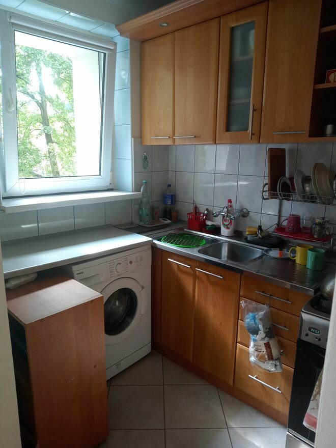 - kuchnia z meblami, zlewozmywakiem, kuchenką gazową i elektrycznym piekarnikiem,