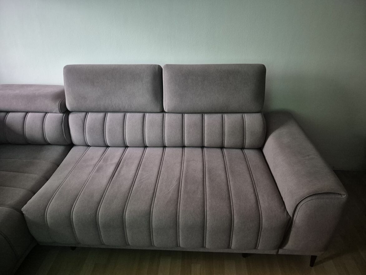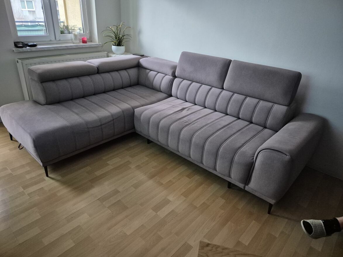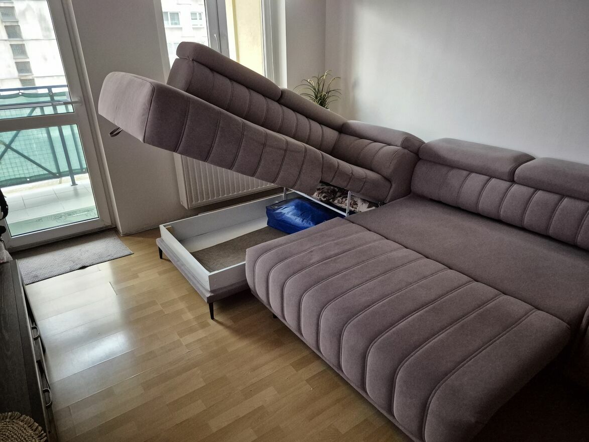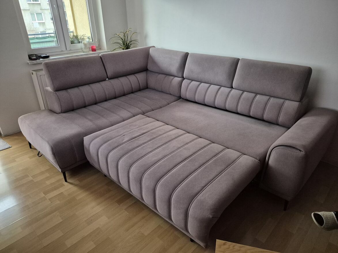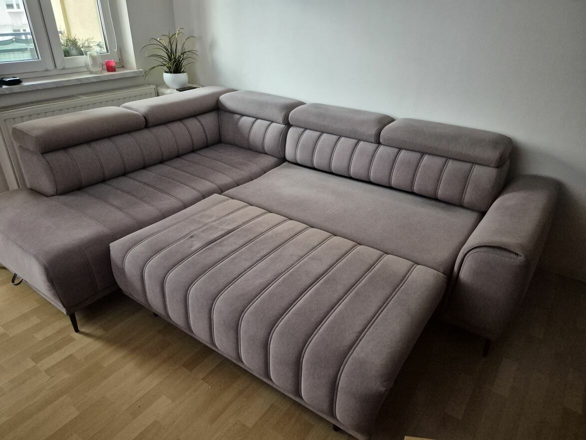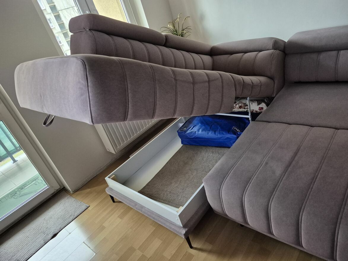 Narożnik z regulowanymi zagłówkami oraz z pojemnikiem na pościel